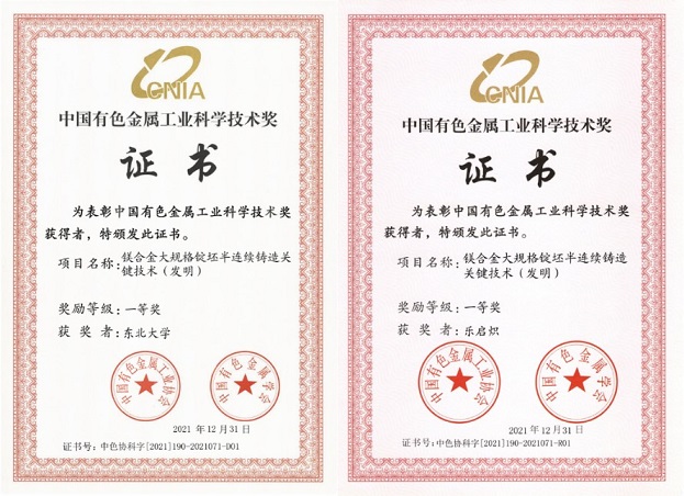 近日,中国有色金属工业协会、中国有色金属学会公布了2021年度中国有色金属工业科学技术奖获奖名单,我实验室乐启炽教授主持项目“镁合金大规格锭坯半连续铸造关键技术(发明)”获中国有色金属工业科学技术一等奖。
