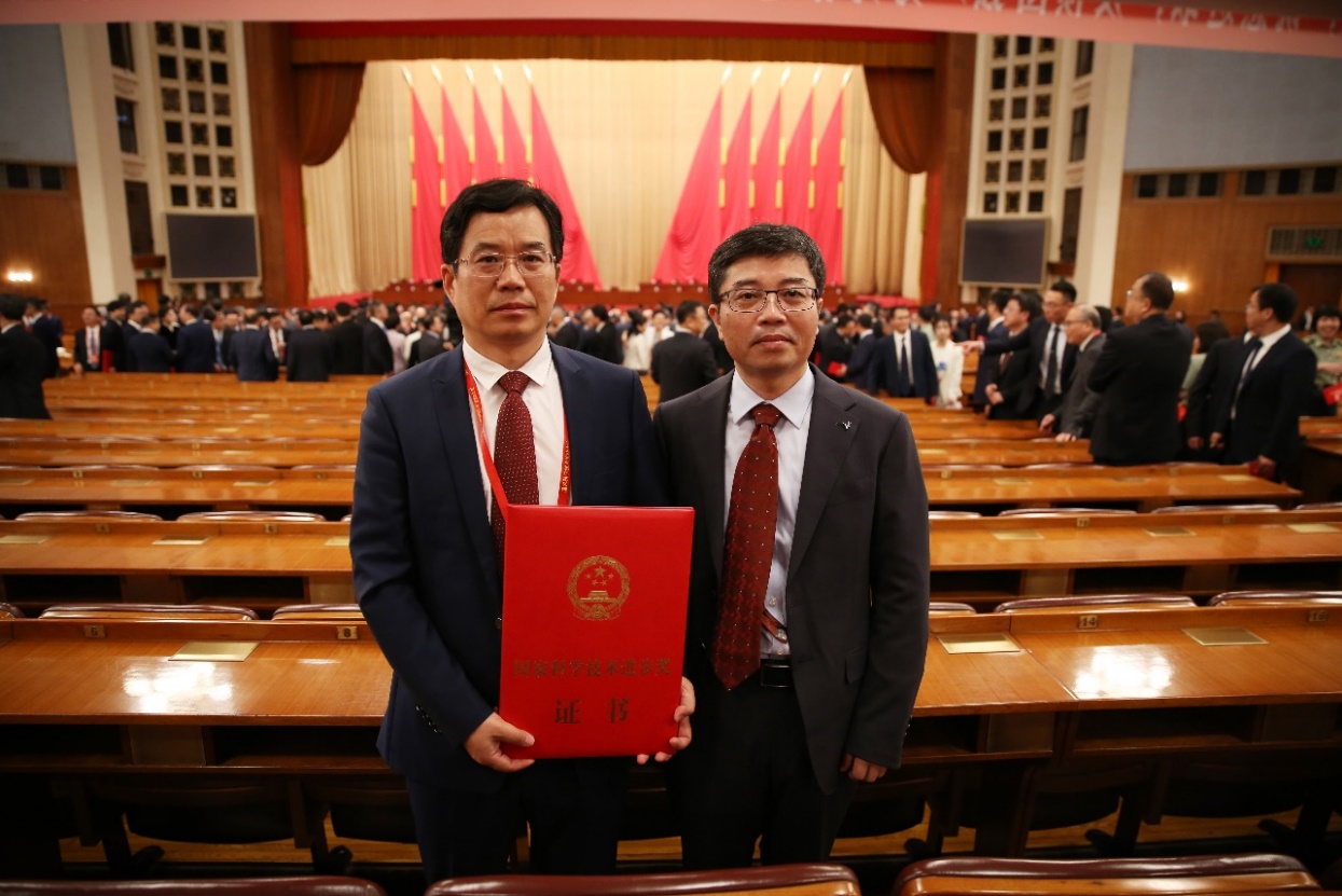 6月24日,全国科技大会、国家科学技术奖励大会、两院院士大会在人民大会堂隆重召开。中共中央、国务院决定对为我国科学技术进步、经济社会发展、国防现代化建设做出突出贡献的科学技术人员和组织给予奖励。东北大学主持的“大型金属坯料制备电磁调控关键共性技术开发和应用”项目获国家科学技术进步奖二等奖。主要完成人包括我实验室的王强教授、乐启炽教授和王向杰研究员。项目第一完成人王强教授和第三完成人乐启炽教授作为单位和获奖人代表参加了此次盛会。