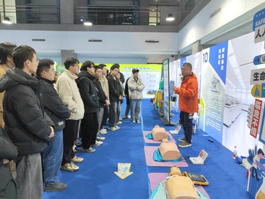 本次流动体验馆内容设计科学全面,旨在筑牢学生心中的安全防线。在防护装备区,护目镜、防护服、防毒面具等个人防护装备整齐陈列,专业人员详细讲解了其适用场景、选用标准及正确佩戴方法,确保每位同学在面对不同实验风险时,能做到“正确防护,万无一失”。应急急救区作为培训的重点环节,吸引了大量同学驻足学习。现场设置的AED(自动体外除颤仪)操作模拟点和心肺复苏实操台前,同学们在指导下轮流上手,熟悉急救流程,掌握了在紧急情况下为生命争取宝贵时间的关键技能。