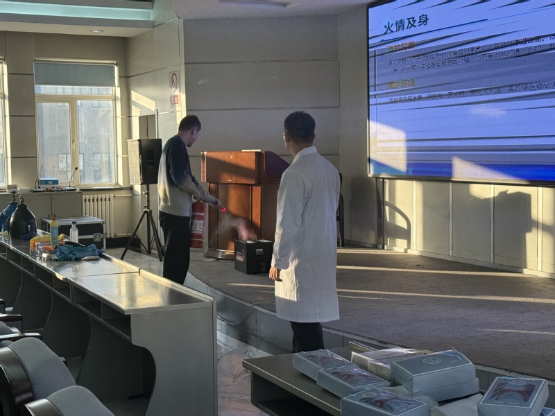 消防安全作为实验室安全的基石,同样是本次演练的重中之重。在灭火器实操环节,师生们在专业人员指导下,轮流上阵,亲身体验了“提、拔、握、压”的操作要领,准确对准模拟火源进行扑救,有效掌握了扑灭初期火灾的关键技能。随后进行的灭火毯使用教学,则演示了如何通过快速覆盖火源以隔绝空气的方式进行灭火,并指导大家如何正确披戴灭火毯进行自我防护与紧急逃生。